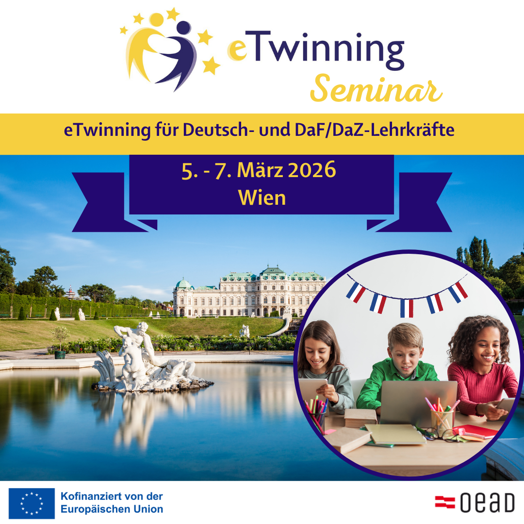 Von Donnerstag, 5. bis Freitag, 7. März findet in Wien ein internationales eTwinning-Seminar für Lehrkräfte der Sekundarstufe I und II statt, die gemeinsam mit Partnerschulen in Europa ihren Deutsch- bzw. DaF/DaZ-Unterricht interkulturell, digital und kreativ gestalten möchten.