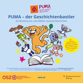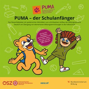 Der Name PUMA steht für spielerisches und zugleich kompetenzorientiertes Sprachlernmaterial für Kinder im Alter von vier bis sieben Jahren. Zentrales Anliegen ist die alltagsintegrierte Sprachförderung am Übergang von elementaren Bildungseinrichtungen in die Volksschule.